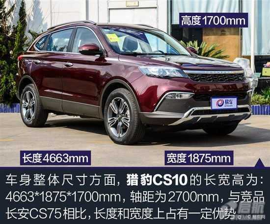 外觀方面,獵豹CS10采用了最新的家族式前臉設(shè)計(jì),中網(wǎng)進(jìn)氣格柵采用蜂窩狀設(shè)計(jì),前大燈組內(nèi)還配備了LED日間行車燈。此外,前保險(xiǎn)杠下方的進(jìn)氣口大嘴式的造型凸顯兇猛。
